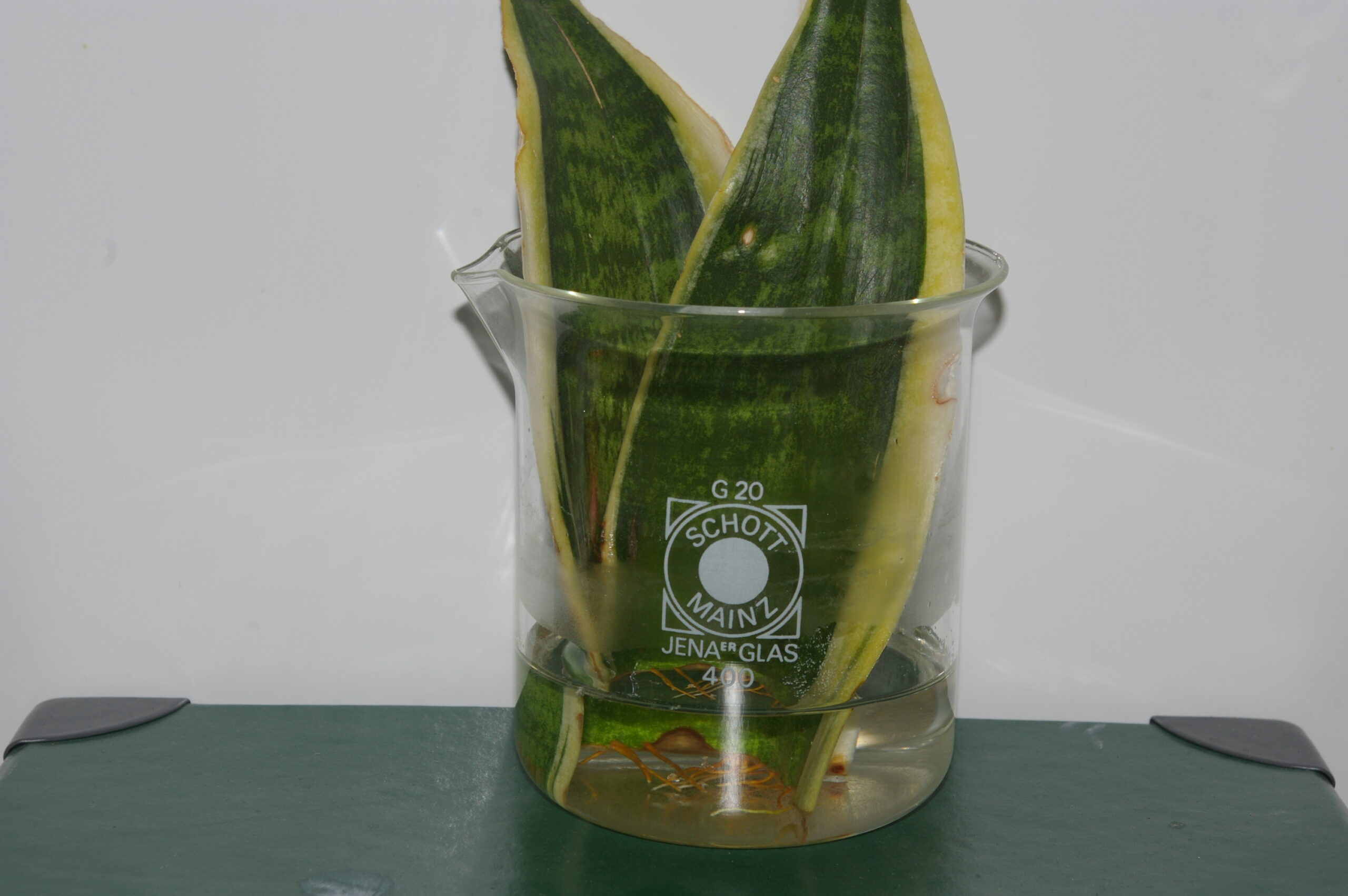Zet het stekje in schoon water en wacht geduldig. Ververs wel wekelijks het water. De Sanseveria groeit langzaam, dus geduld moet je wel hiervoor hebben. Wanneer de wortels 5-7 cm zijn mag je het stekje in de grond zetten.