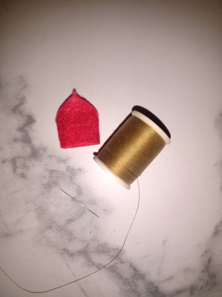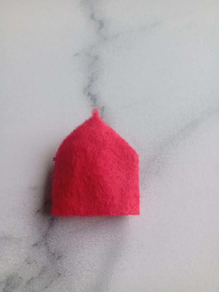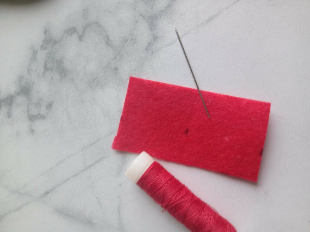 Knip van het rode vilt een vierkant uit van 2.5 cm bij 2.5 cm.