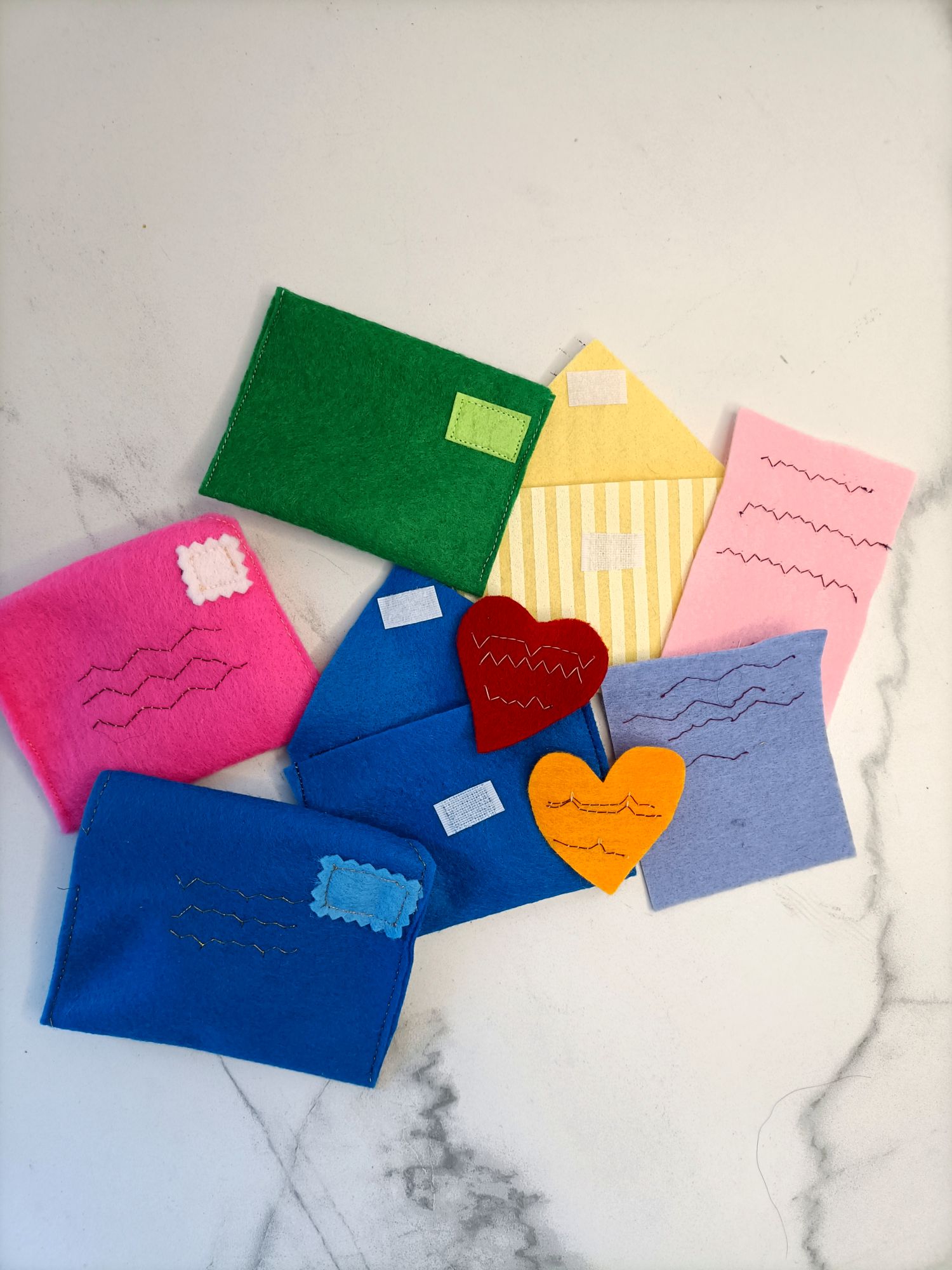 Meet opnieuw de lengte en omtrek van de romp van de peg doll. Haal van de omtrek van de romp 1 cm af. Teken de afmeting af op het rode vilt en knip dit uit.