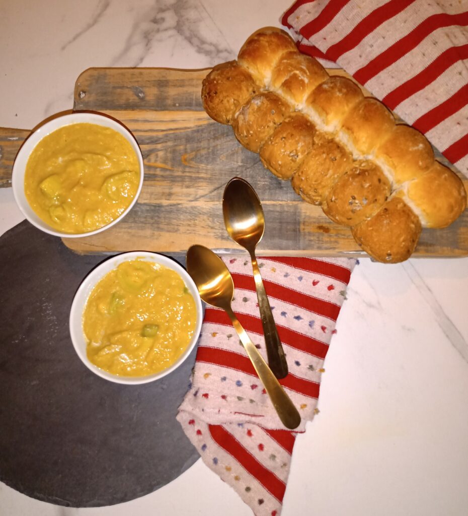 Bloemkoolsoep met een vleugje kerrie is dit geval. Bloemkool is van zichzelf ook vrij romig en je kunt de smaak vrij makkelijk aanpassen. Bijvoorbeeld door er kerrie bij te voegen, zoals dit recept.