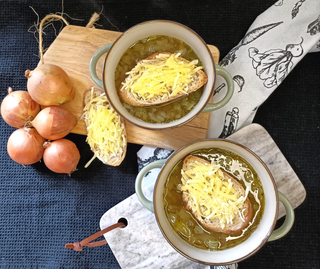 Stap in de betoverende sfeer van Parijs met ons heerlijke recept voor vegan Franse uiensoep, net op tijd voor het langverwachte laatste afleveringen van het vierde seizoen van Emily in Paris op Netflix! Verwen je smaakpapillen met de rijke smaken van gekarameliseerde uien, hartige bouillon en een gouden laagje kaas, allemaal zonder enige dierlijke ingrediënten. Duik in de wereld van Franse culinaire charme en creëer thuis een authentieke Parijse ervaring. Laat de keukengeuren je meevoeren naar de straten van de stad van de liefde terwijl je geniet van deze vegan lekkernij.