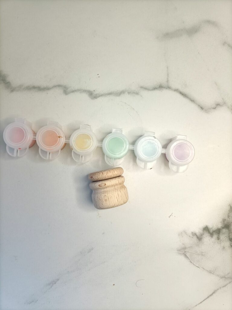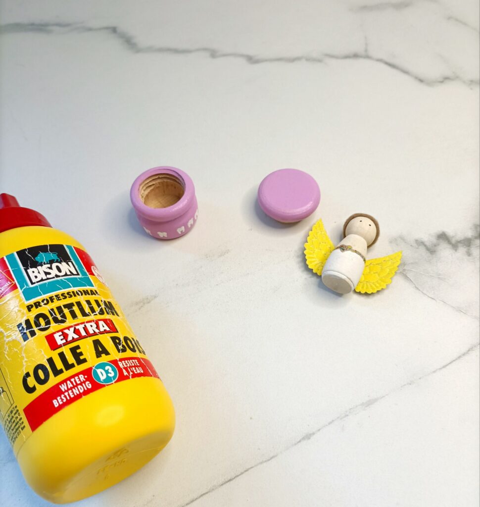 Verf de tanden op het bakje en lak zowel het potje als de engel af met vernis.