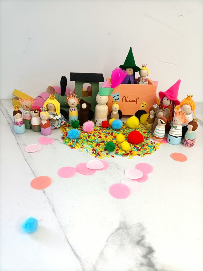 Verander je sensorische carnavals optocht in een sprookjesachtig feest met deze d.i.y. prinsessen pegdoll! Creëer je eigen betoverende pegdoll met een stoffen jurk en fimo klei haar en breng magie naar je carnavalsviering. Klik hier voor eenvoudige stappen en een koninklijke uitleg.