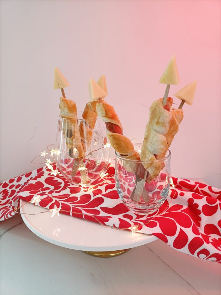 Deze vuurpijlen zijn een absolute must-try!Deze vuurpijlen van knakworst, bladerdeeg en kaas zijn precies wat je nodig hebt! Eenvoudig te maken en heerlijk om te delen, deze feestelijke lekkernijen zullen gegarandeerd een hit zijn bij jong en oud. Of je nu een ouder bent die een feestelijk hapje wil maken voor het kerstontbijt op school of een gastheer die zijn gasten wil verwennen met een verrukkelijke traktatie tijdens Oud en Nieuw, deze vuurpijlen zijn eenvoudig te bereiden en heerlijk om te delen.Klaar om je feestelijke tafel te verrijken met een explosie van smaken? Laten we samen de keuken in duiken en genieten van deze heerlijke vuurpijlen!