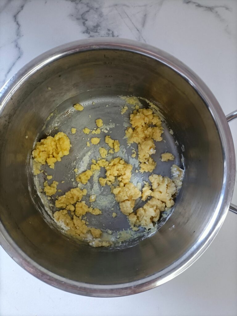 Smelt de boter in een andere pan op middelhoog vuur. Voeg de bloem toe en roer goed door totdat er een roux ontstaat.