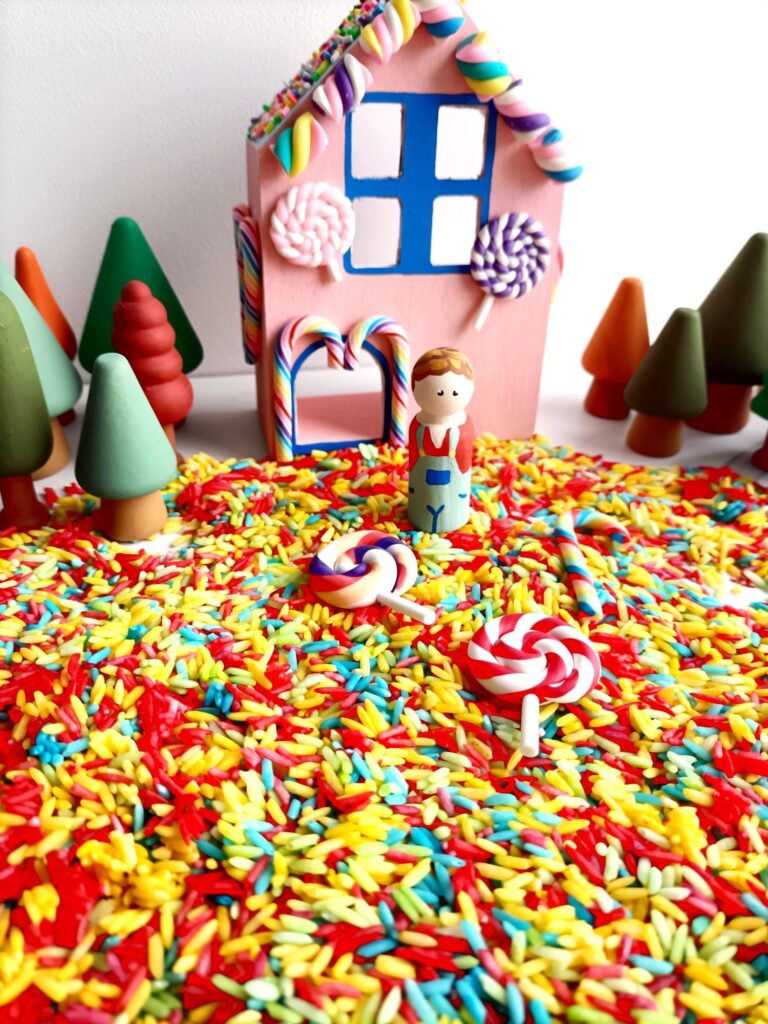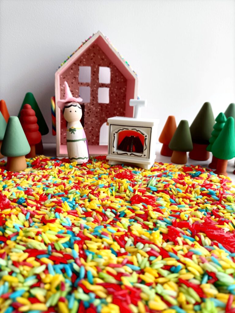 Wil je je Hans en Grietje set nog sprookjesachtiger maken? Gekleurde rijst is een superleuke en simpele manier om een magische ondergrond te creëren! Klik hier voor uitleg hoe je zelf de rijst kunt maken.